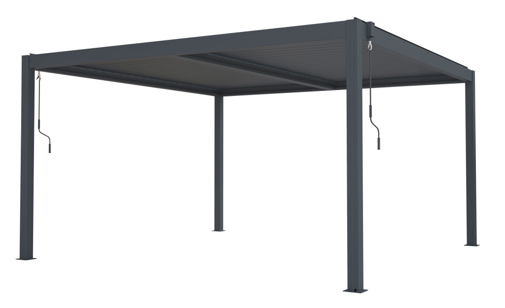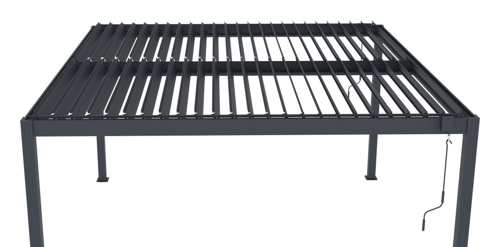 - Forgatható tetőlamellák az árnyék, a szellőzés vagy az eső elleni védelem manuális beállításához