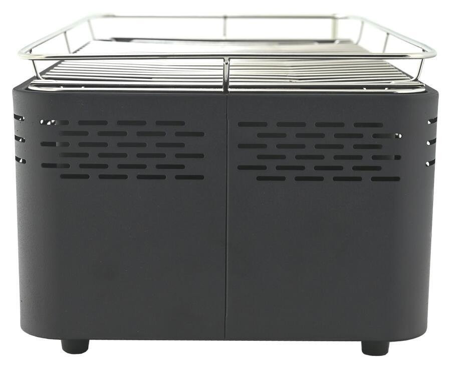 A grill beépített ventilátorral rendelkezik, amely jelentősen felgyorsítja a faszén begyújtását. A vezérlés egyszerű, egy forgógombbal történik. Alacsony füstkibocsátásának köszönhetően asztali használatra is alkalmas. Minőségi acél szerkezete és kompakt kivitele megbízható társ minden grillezéshez.