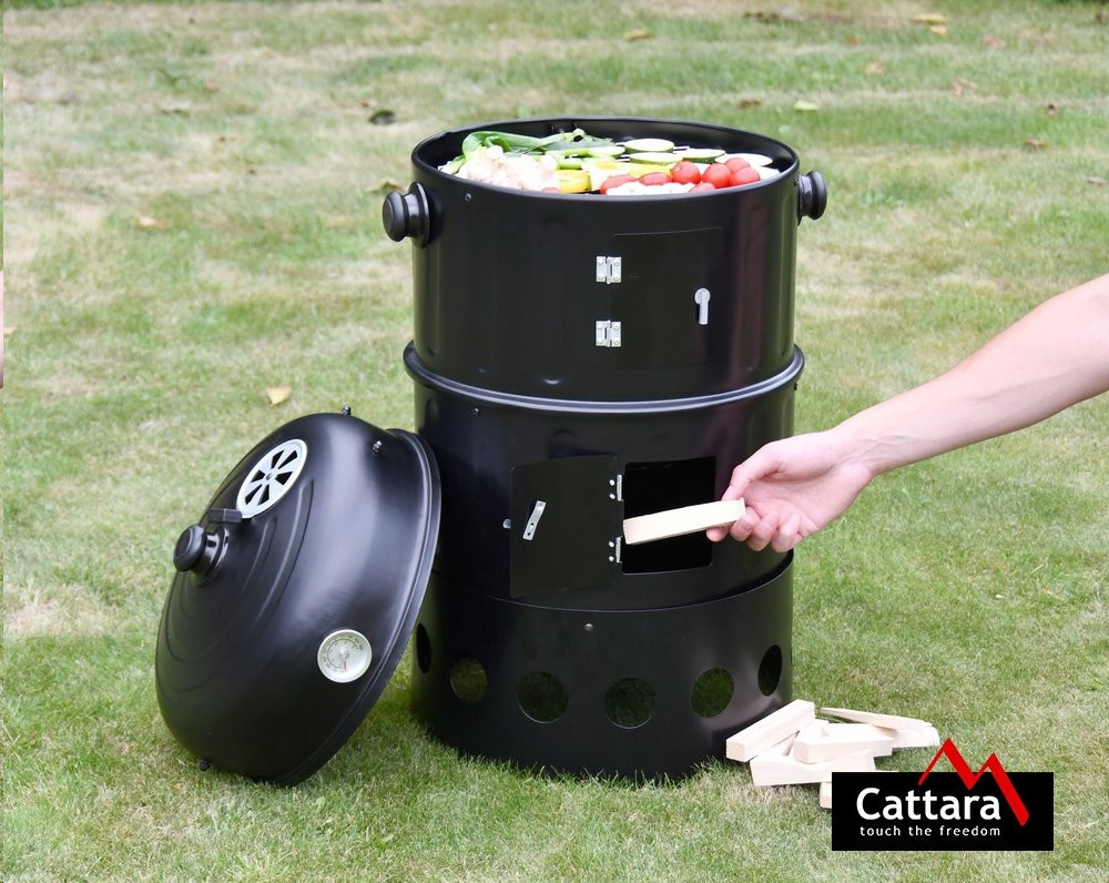 A többfunkciós Cattara PISA 3 az 1-ben grill segít számos étel elkészítésével. Ez nem csak egy klasszikus grill, vízfürdővel is rendelkezik és használható füstölőként is. A grill két edénye nemcsak faszénre alkalmas, de vízre is, ami lehetővé teszi a grillezést vízfürdő felett.