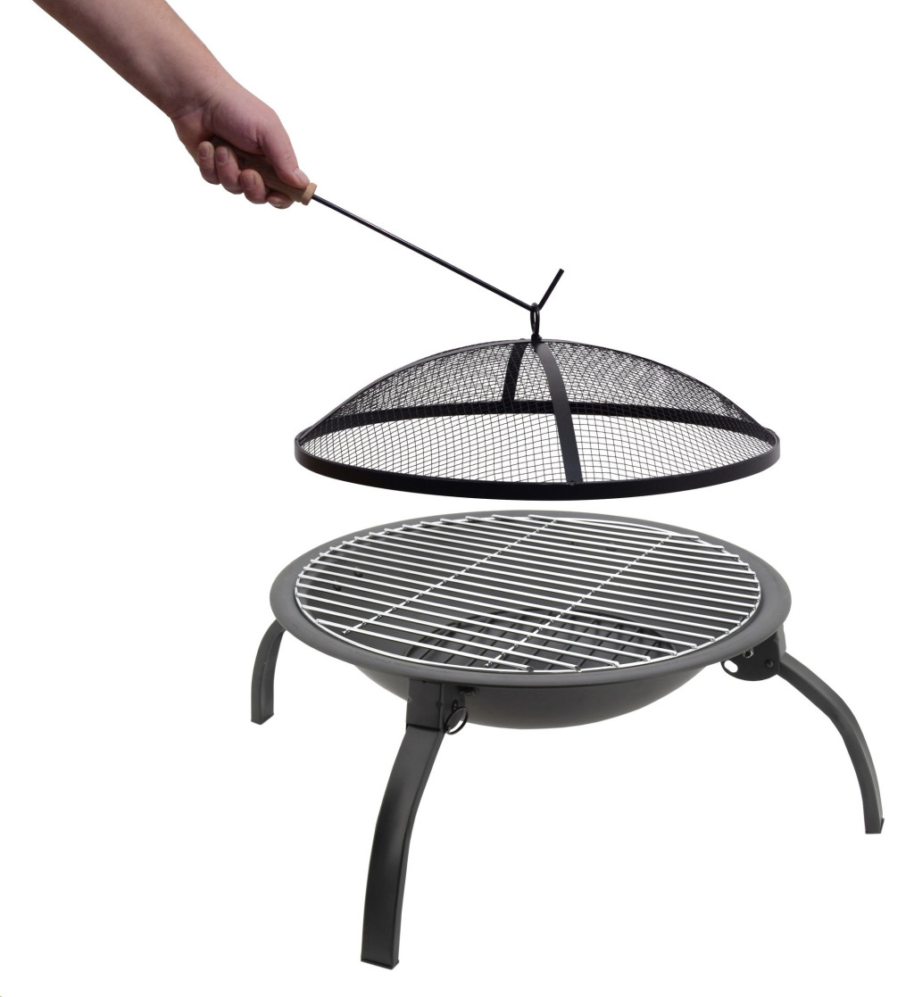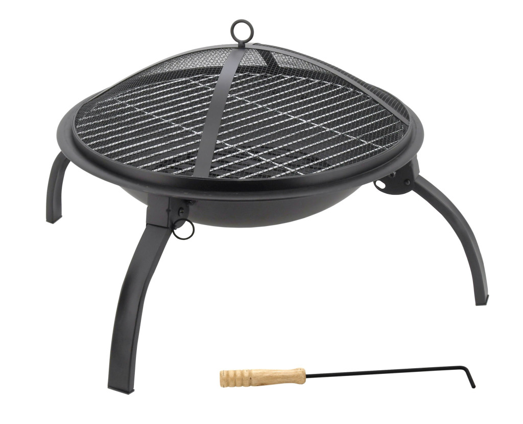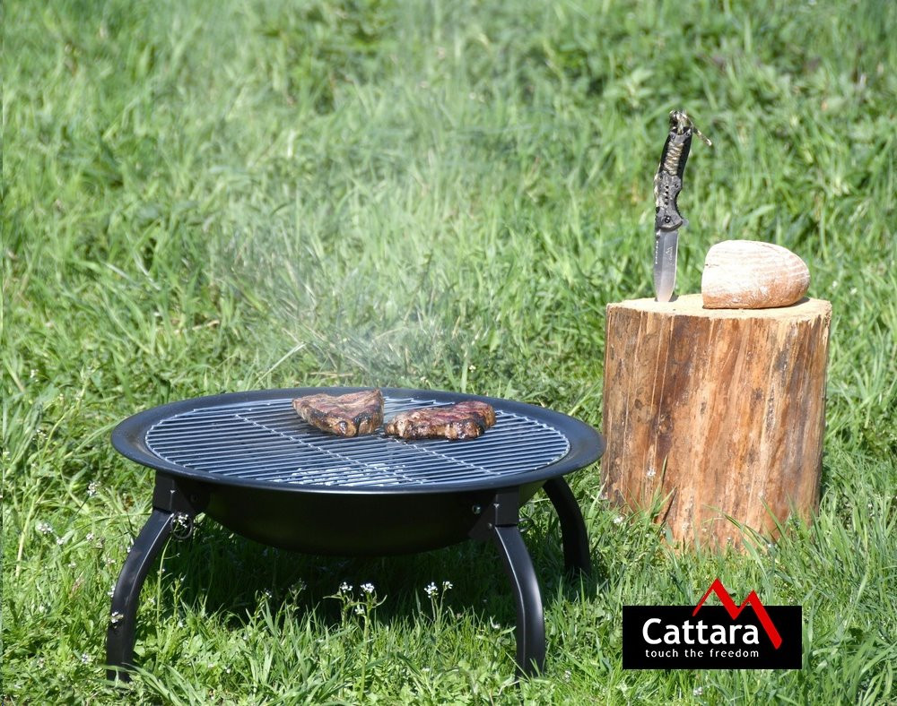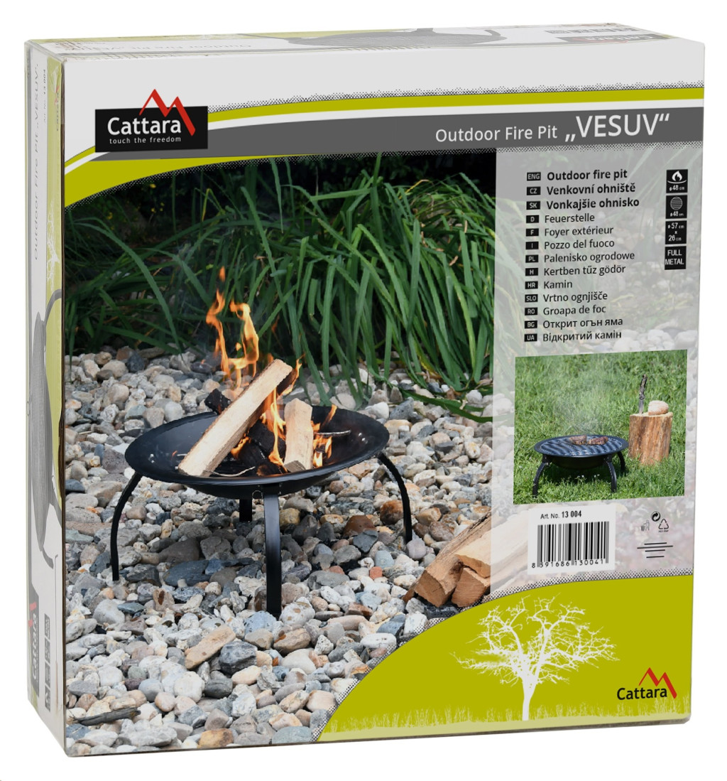 A Cattara Vesuv hordozható fatűzhely tökéletes választás minden kertbe vagy teraszra. A minőségi acélszerkezetet magas hőmérsékletű fekete festékkel vonták be, amely könnyen ellenáll az erős hőhatásnak is. Négy összecsukható lába biztosítja a tűzrakóhely stabilitását és jobb tárolását. Ha a lábak össze vannak hajtva, a tűzrakó minimális helyet foglal, így könnyedén magaddal viheted például a kempingbe vagy a természetbe. A biztonságról és a kényelemről a speciálisan alakított hálós fedél gondoskodik, amely megvédi a felhasználót a szikráktól.