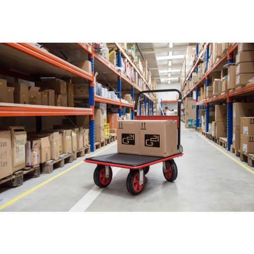 G21 raktárkocsi 4 kemény gumiból készült kerékkel rendelkezik, melyek nem hagynak maguk után fekete csíkot, így nem rongálják a padlót. Így ideális akár költözéseknél is.