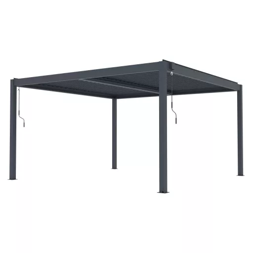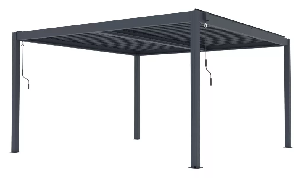 Élvezze a luxus kerti pihenést a stílusos G21 bioklimatikus pergolával, amely maximális kényelmet biztosít minden időjárási körülmény között. A teljes alumínium szerkezetnek, az akár 110°-ban állítható tetőlamelláknak és az oldalsó kiegészítők lehetőségének köszönhetően könnyedén beállíthatja az ideális árnyékot, a légáramlást és az eső elleni védelmet.