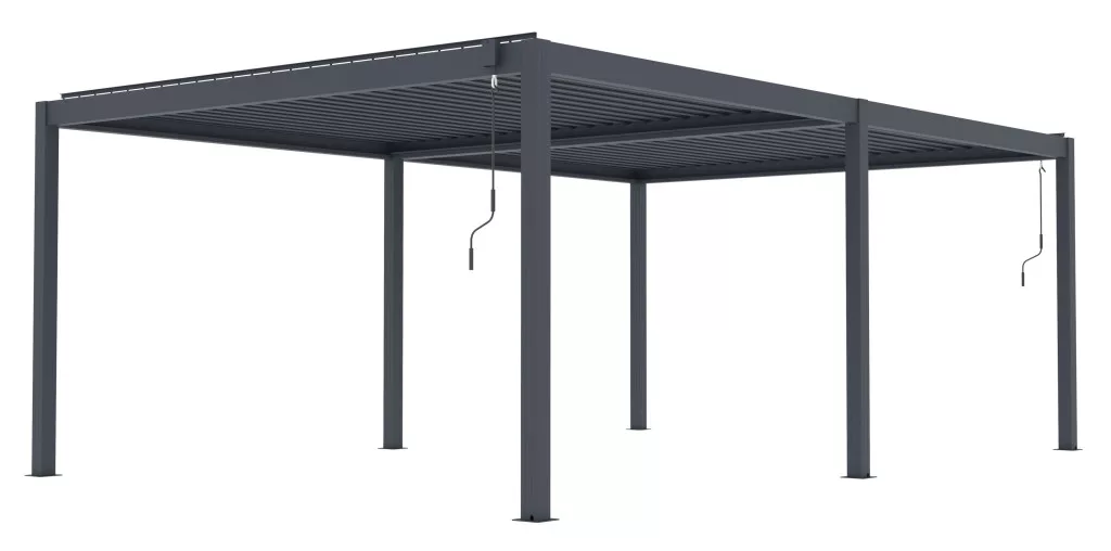 A G21 pergola praktikus kiegészítőkkel bővíthető, mint például lamellás falak és oldalsó napellenzők, amelyek növelik a kényelmet és nagyobb magánszférát biztosítanak. Ezek a kiegészítők megvédik a széltől és a szomszédok tekintetétől, valamint lehetővé teszik, hogy a pergolát pontosan az elképzelései szerint alakítsa ki.