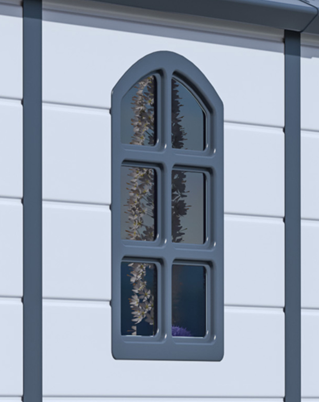 Egy igazi kerti házban nem hiányozhat egy kis ablak. A mi kerti házunknál sem hiányzik, ráadásul elhelyezhető akárhova szeretné. Ne hagyja magát korlátozni fényhiánnyal és ne gondolkozzon, hogy a tárolót a háza falához vagy szabad térben állítsa-e fel. Az elegendő fény nem fogja Önt korlátozni. Az ablakot egyszerűen elhelyezheti a ház jobb vagy bal oldalára, ahol épp szüksége lesz rá.