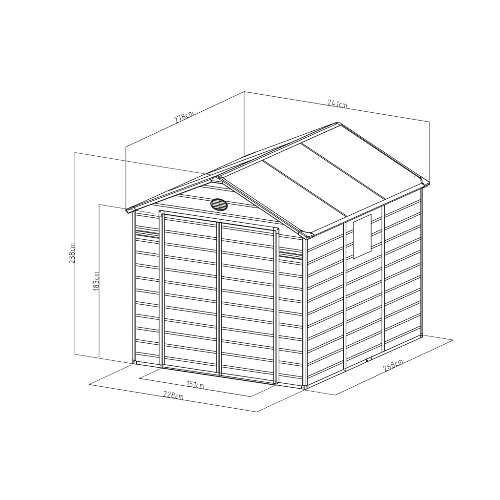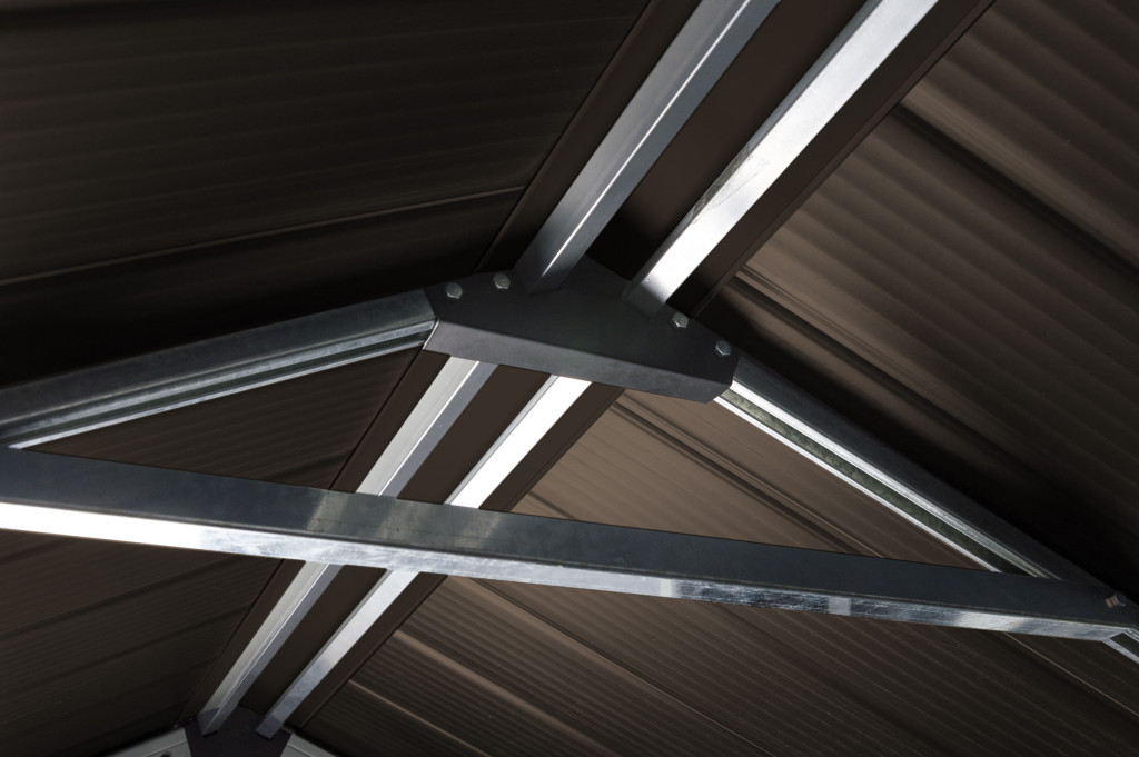 A G21 kerti ház szerkezete horganyzott lemezekből, műanyag oszlopokból 1,5 mm vastagságú anyagból és 12 mm vastagságú külső panelekből van összeállítva. A panelek erősített műanyag szendvicslapokból készültek. A kerti ház teteje 60 kg/m2 teherbírással lett megszerkesztve. A ház elülső felén 151 cm széles és 183 cm magas kétszárnyú ajtó van elhelyezve, amely biztosítja az egyszerű hozzáférést.
