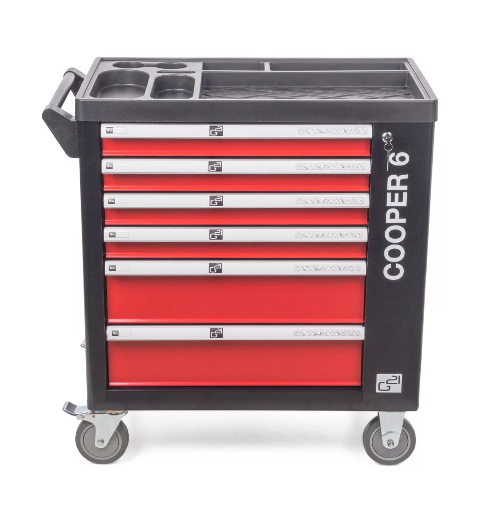 A G21 Cooper 6 szerszámos műhelykocsi úgy készült, hogy kompromisszumok nélkül megfeleljen minden szakmunkás igényeinek. A kompakt G21 Cooper 6 szerszámtároló kocsi teljes terhelhetősége 150 kg, minden egyes fiók 25 kg-ot bír el.