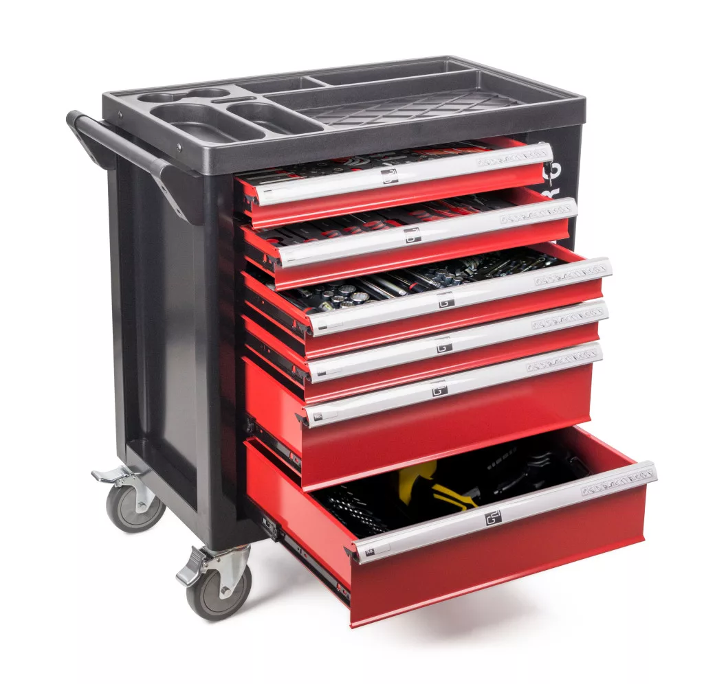 A minőségi fémszerkezet, a fiókrendszer és görgők precíz kialakítása, az okos rendszerező kialakítás és a külső oldalon található további tárolóhely tökéletes felszereléssé teszi minden professzionális vagy otthoni műhely, garázs, javítóműhely vagy raktár számára.