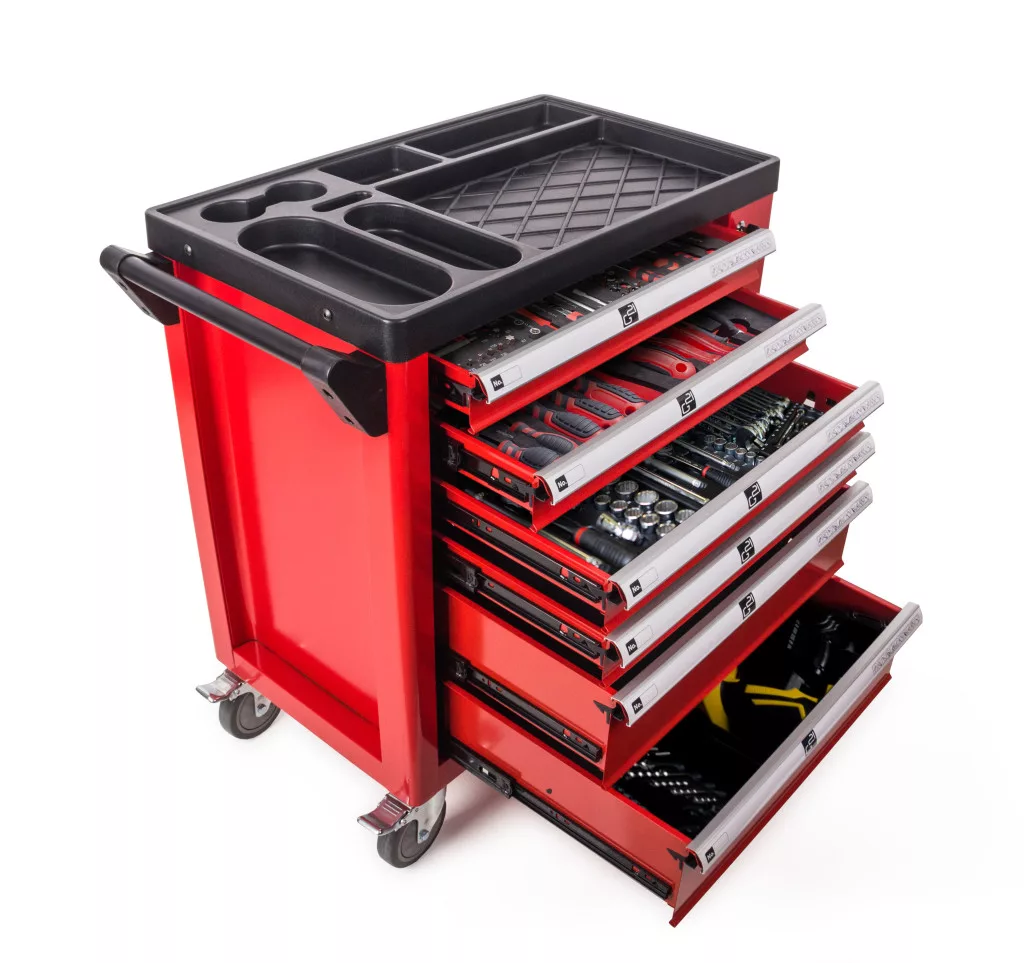 A minőségi fémszerkezet, a fiókrendszer és görgők precíz kialakítása, az okos rendszerező kialakítás és a külső oldalon található további tárolóhely tökéletes felszereléssé teszi minden professzionális vagy otthoni műhely, garázs, javítóműhely vagy raktár számára.