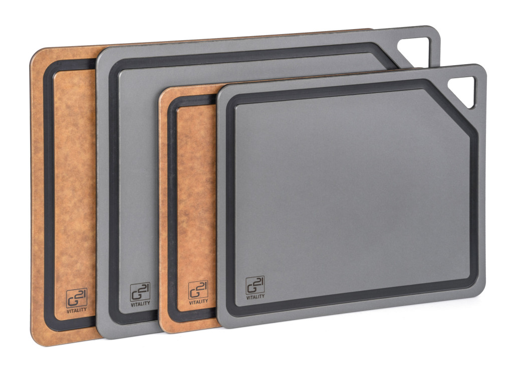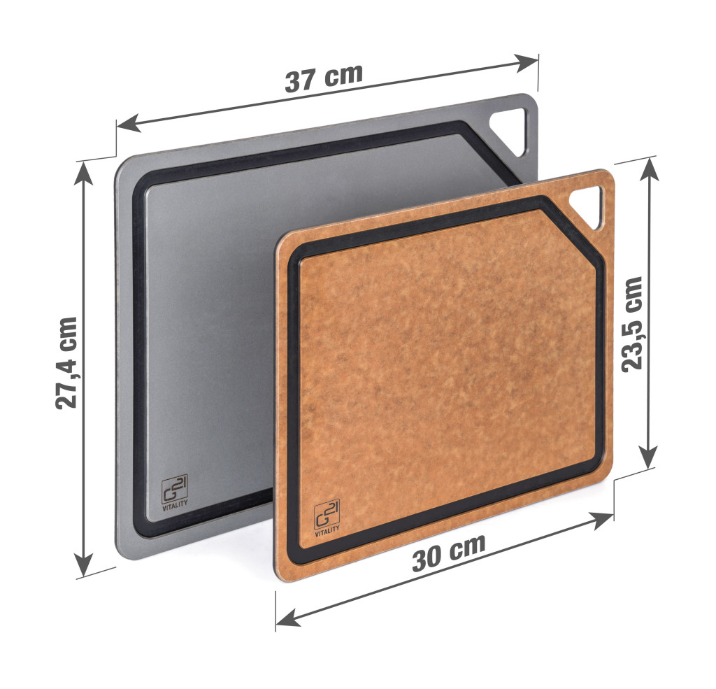 G21 EcoCut szeletelődeszka természetes cellulózból – 2 darabos készlet, grafit/barna színben