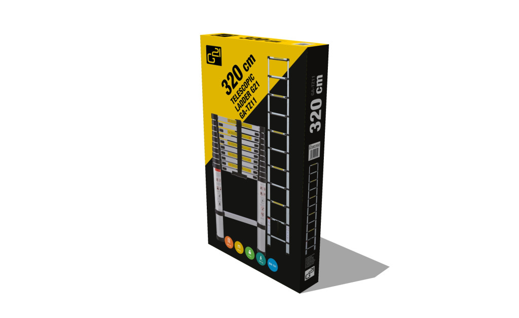 A G21 GA-TZ11-3,2M alumínium teleszkópos létra szakemberek számára kifejlesztve, egy elsőosztályú modell, amely erős és tartós szerkezettel rendelkezik a duralimínium profiloknak köszönhetően. A szerkezetére könnyű alumínium anyagok voltak felhasználva, amelyek csökkentik a súlyát, ugyanakkor biztosítják, hogy a létra a lehető legkisebb méretre legyen összecsukva.