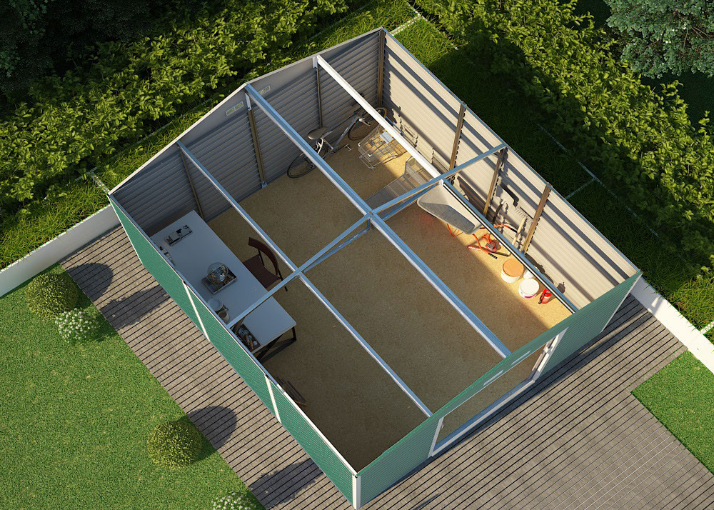 A G21 GAH 1300 kerti ház kiváló minőségű 0,25 - 0,30 mm vastagprofilozott acéllemezből készült. A felülete porszórással van bevonva.Acélszerkezete horganyzott és szellőzőrácsokkal is rendelkezik.