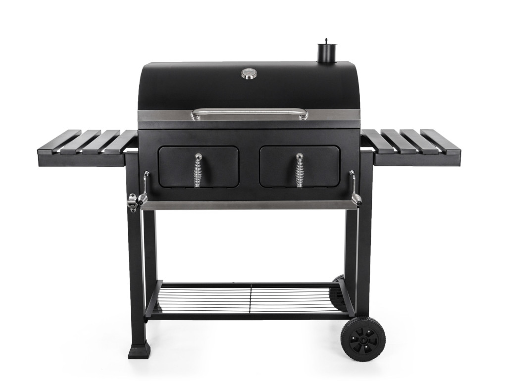 A két ajtó a grill elülső oldalán lehetővé teszi akönnyű és kényelmes hozzáférést a sütőkamrákhoz faszén hozzáadásához vagy a hamutartó tisztításához.