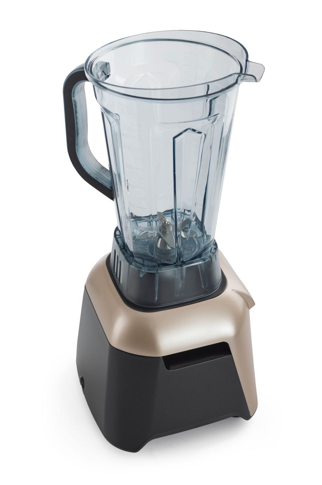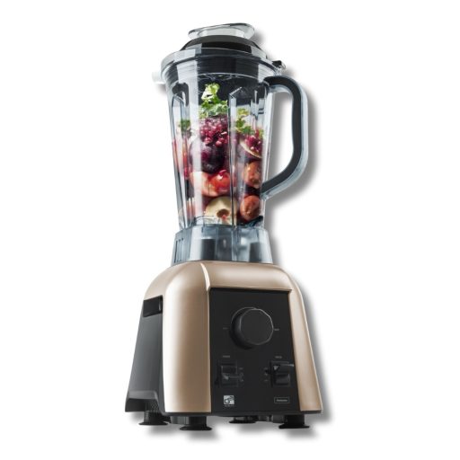 A 2,5 literes kehely tritánból készült, amely egy speciális, könnyű, az egészségre ártalmatlan (BPA-mentes) és különösen ellenálló anyag. A csendesebb működést a motor hangszigetelése biztosítja. A kehely tökéletesen illeszkedik a fém fogaskerekekkelellátott testhez. A 6 darab kiváló minőségű és alakú késnek köszönhetően finomrazúz mindent. Hozzá kell adnia még egy kis vizet turmixolás közben?Semmi akadálya! A kis fedélnek köszönhetően biztonságosan megtehetiturmixolás közben is. Használat után öblítse el a kehelyt, vagyhelyezze a mosogatópépbe.