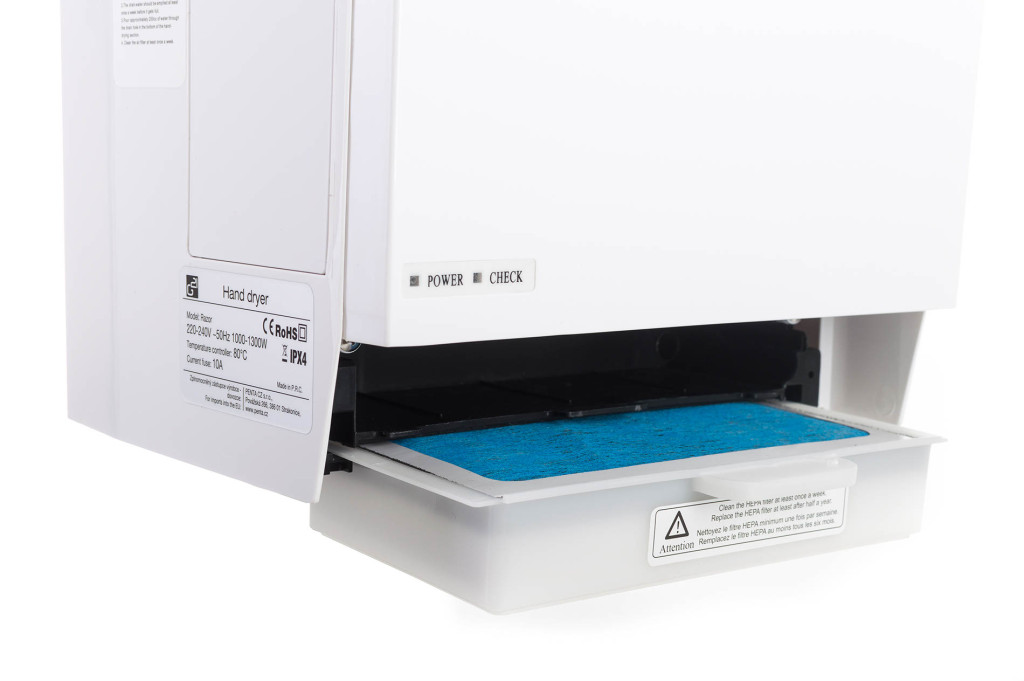 Nincs többé vizes padló! A kézszárítók többségénél a víz a padlón végzi, viszont a G21 Razor készüléknél ez nincs így! A kézszárító a vizet az alján található tartályban gyűjti össze. A G21 Razor-t leginkább iskolákba, kórházakba, nyilvános épületekbe, éttermekbe, és irodákba ajánljuk.