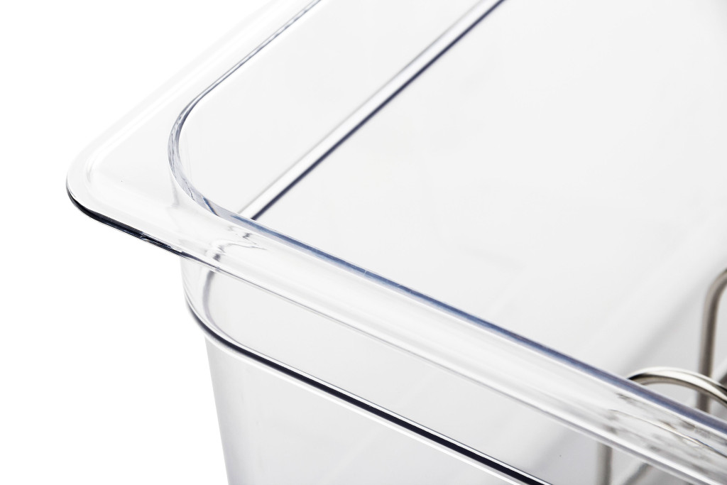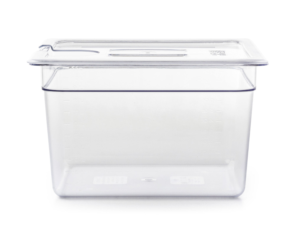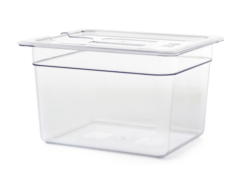A sous-vide főzésre szolgáló G21 tartály rendkívül tartós polikarbonátból készül, és a fém edényekhez képest hatékonyabban tartja meg a hőmérsékletet, és hozzásegít a víz gyorsabb felmelegítéshez. A tartály polikarbonát anyaga megfelel a legszigorúbb biztonsági követelményeknek is és nem káros az egészségre. A felhasznált anyag nagy stabilitásának köszönhetően a tartály mosogatógépben is mosható, ami sok időt és fáradságot takarít meg. Ezen kívül az edény olyan fedéllel rendelkezik, amelyet a G21 a sous-vide tűzhelyhez tervezték. Természetesen a fedél más sous – vide főzővel is használható.