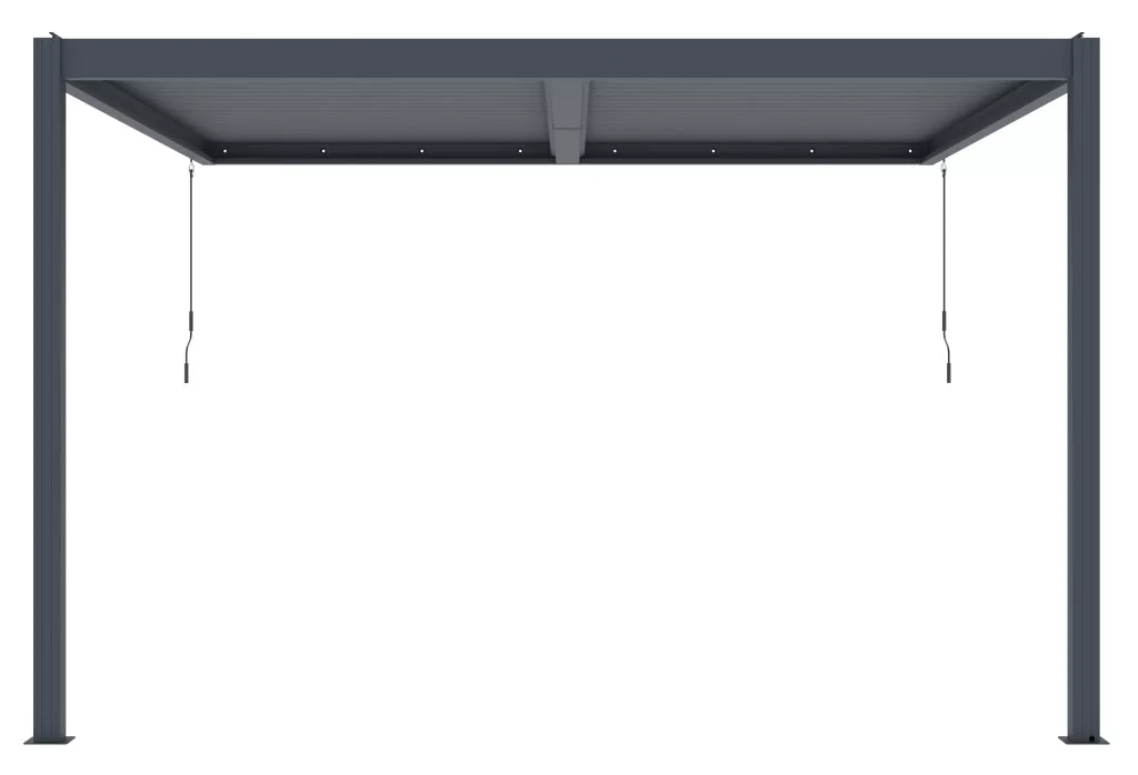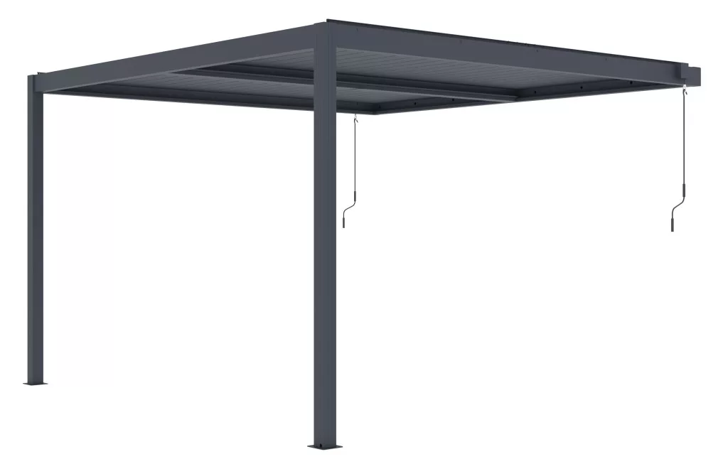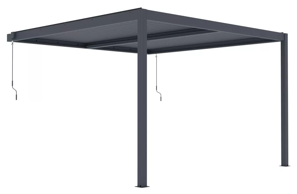 - Forgatható tetőlamellák az árnyék, a szellőzés vagy az eső elleni védelem kézi beállításához