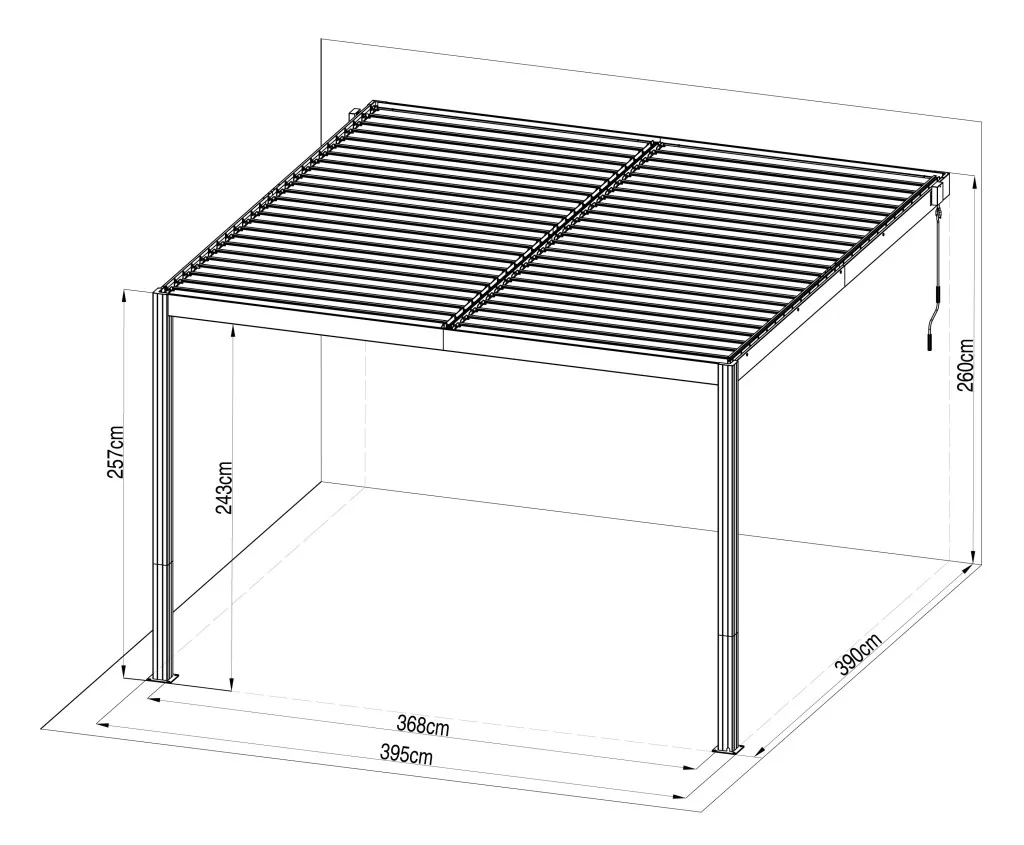 A bioklimatikus pergola egy innovatív kültéri szerkezet forgatható tetőlamellákkal, amelyek lehetővé teszik a hőmérséklet, a szellőzés és az eső elleni védelem szabályozását. A lamellák akár 110°-os szögig nyithatók, zárt helyzetben pedig vízzáróak, így maximális kényelmet biztosítanak minden időjárási körülmény között. A G21 Trenton pergola falhoz történő telepítésre lett kialakítva, így alkalmas terasz pergolaként vagy kerti ház kiegészítéseként.