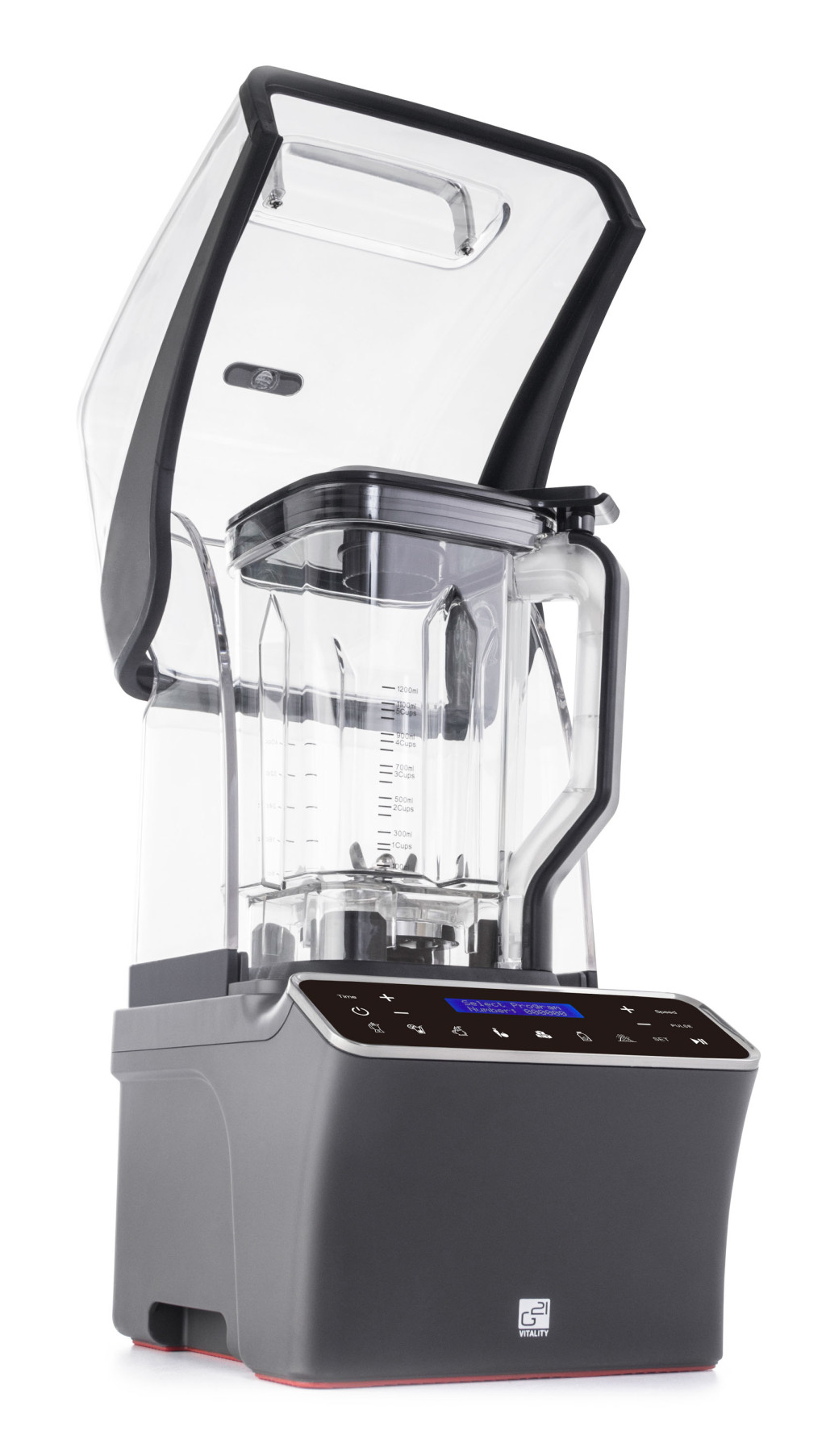 Ennek a vonzó, modern kialakítású asztali keverőnek a nagy előnye a hangelnyelő burkolat a zajszigeteléshez. A G21 Ultimate turmixgép működése ezért jelentősen halkabb, mint a többi asztali turmixgép. A hangszigetelő burkolat átlátszó, így nem akadályozza a rálátást a keverőedény tartalmára. A fedél ugyanakkorbiztonsági biztosítékként is szolgál – a keverő csak akkor indul el, ha a fedél megfelelően le van zárva.