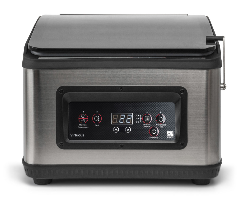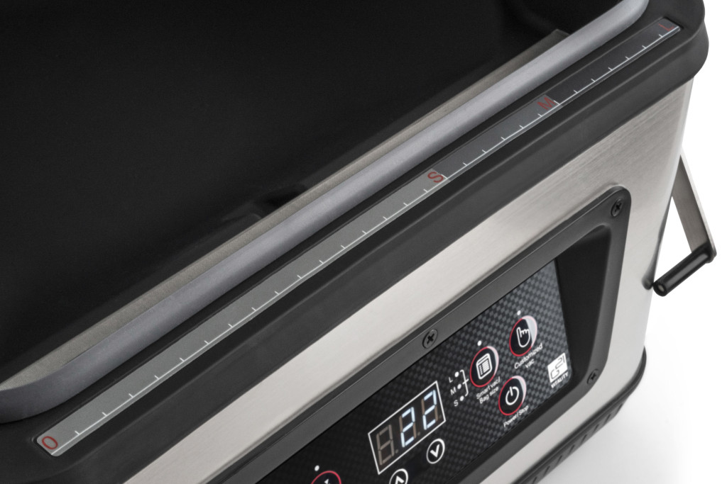 Smart Vac funkció - A Smart Vac funkcióval a kijelző alapján kiválaszthatod a zacskó méretét, és a vákuum magától megkülönbözteti az étel méretét. Ennek megfelelően kiválasztod a megfelelő programot és időt a tökéletes vákuumhatás érdekében.