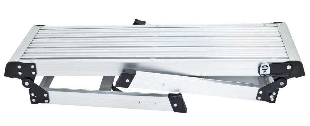 A Work Station összecsukható munkaállvány szétnyitott állapotban 85 x 42 cm méretű felülettel rendelkezik és 48,5 cm magas. Alumínium profilokból készül és alacsony súlyt, stabilitást és ellenállást biztosít.