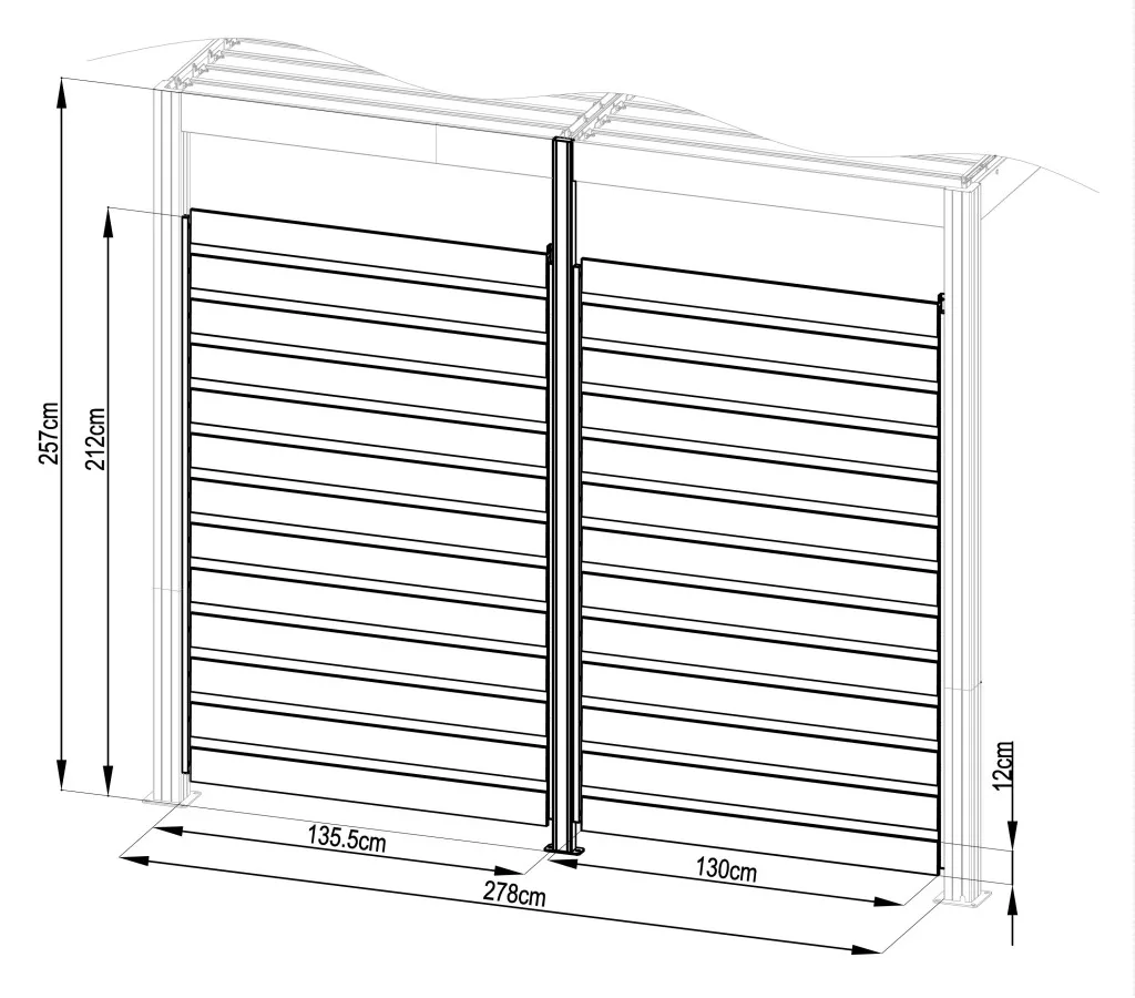 - Rendeltetés: forgatható lamellás fal Trenton pergolához 3x3 és 4x3 m