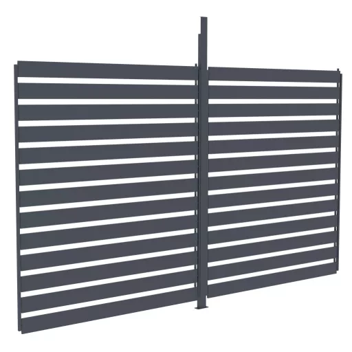 A manuálisan állítható lamellákból készült oldalsó lamellás fal ideális kiegészítője a G21 Trenton pergolának. Maximális rugalmasságot, védelmet és kényelmet biztosít és a forgatható lamelláknak köszönhetően könnyedén beállíthatja a kívánt árnyékolást, magánszférát vagy védelmet az eső és a szél ellen.