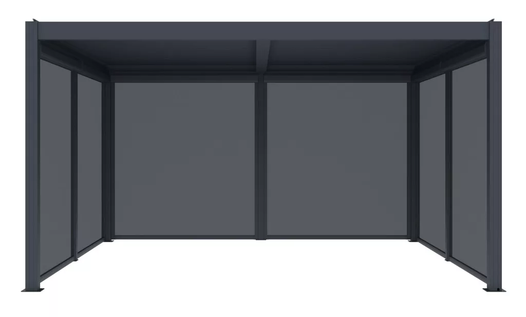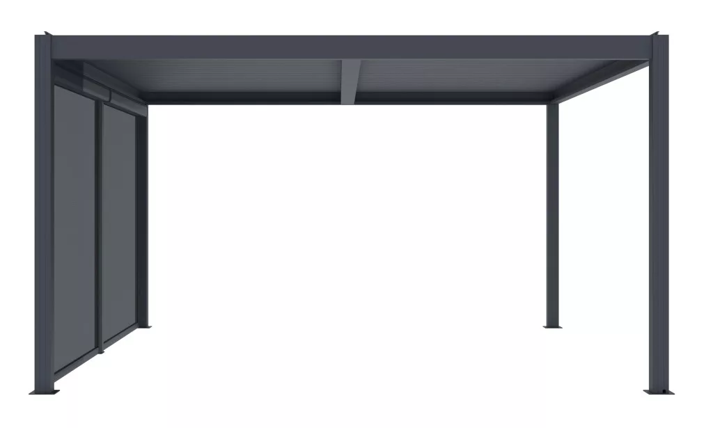 Oldalsó napellenző a Austin pergola praktikus kiegészítője, amely védelmet nyújt a szél, az alacsonyan sütő nap és a kíváncsi tekintetek ellen. A rolós mechanizmus segítségével könnyedén beállíthatja a kívánt fedettségi szintet, hogy kellemes környezetet és magánszférát teremtsen.