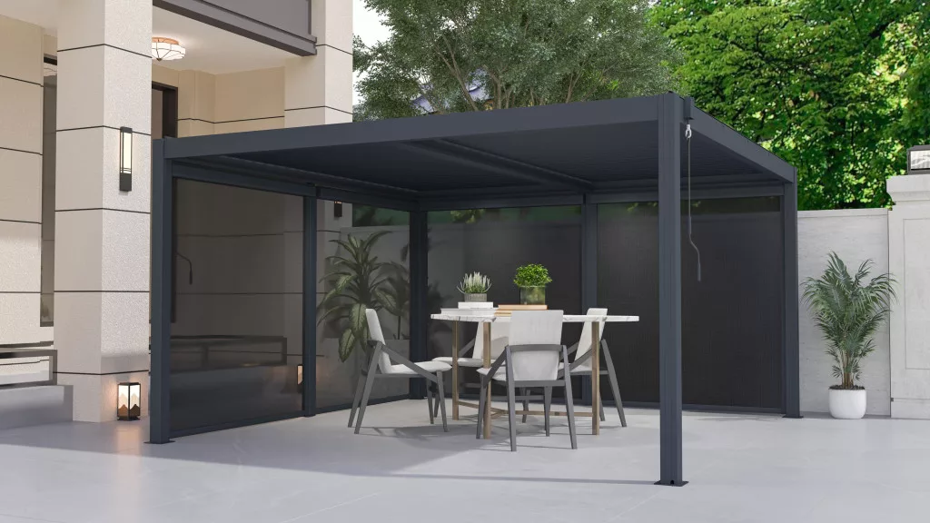 Az oldalsó napellenző kiváló megoldás azok számára, akik még inkább szeretnék igényeikhez igazítani pergolájukat, és kényelmes kültéri pihenőhelyet szeretnének létrehozni bármely évszakban.
