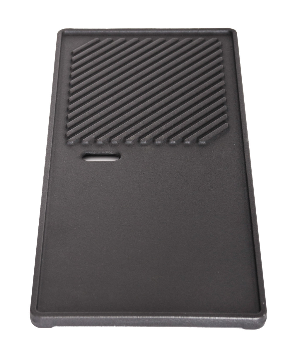 A öntöttvas az egyik legellenállóbb anyagok közé tartozik, melyeket grillezéskor használnak. Ellenál a magas hőmérsékletnek és a karcolásoknak is. A lemez mindkét felén más felületet találunk. Egyik fele sima, melyet leginkább a szeletelt zöldségek, tojások és sajtok grillezésekor használhatunk. Másik fele recés, mely tökéletes alapot biztosít a steakek, nagyobb zöldségek és halak grillezéséhez.