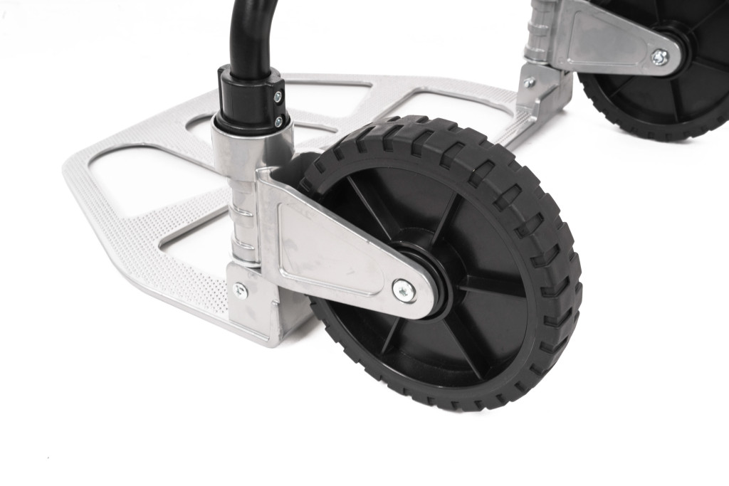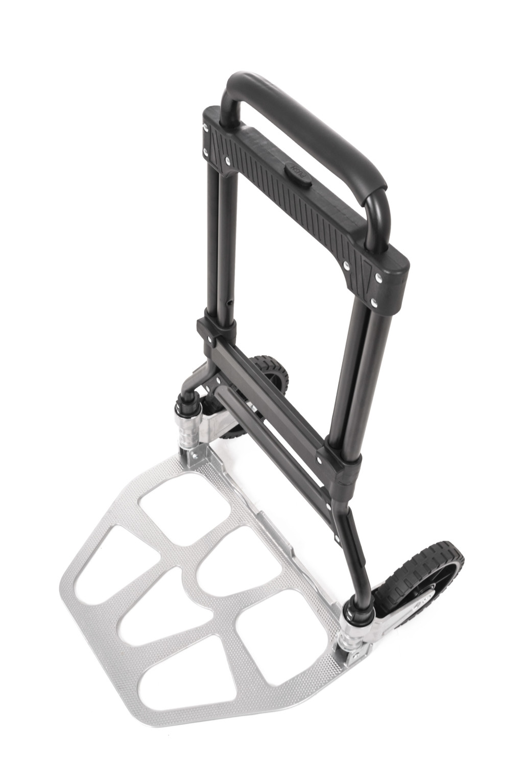 A kézikocsi szerkezete alumíniumból és acélból készült, így ellenáll a nehezebb igénybevételnek és a mindennapos használatnak. A nagy 17 cm-es kerekek különféle felületeken is jól működnek. A behúzható fogantyú megkönnyíti a szállítást és a tárolást. Összecsukva mindössze 48,5 × 83 × 6 cm méretű, súlya pedig csak 6,1 kg, így akár autó csomagtartójában is könnyedén elfér.