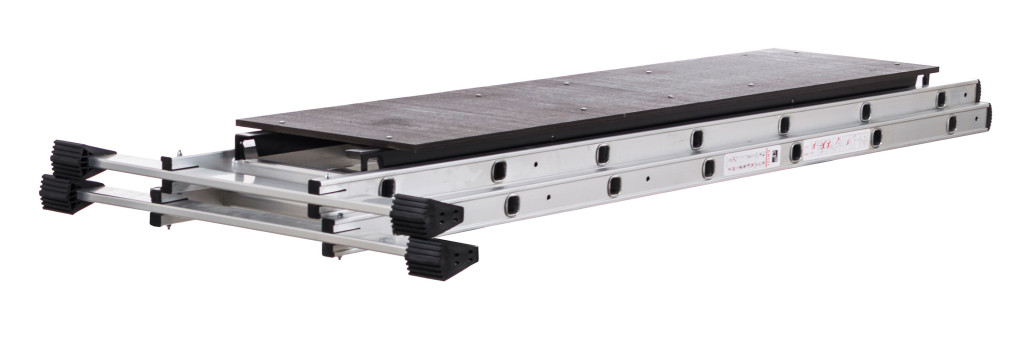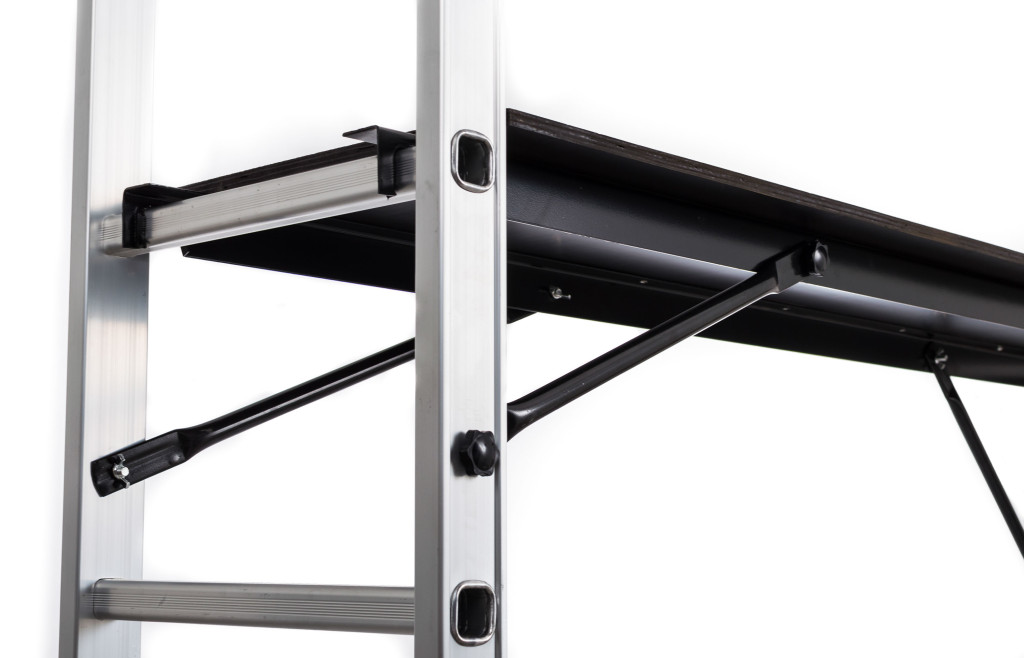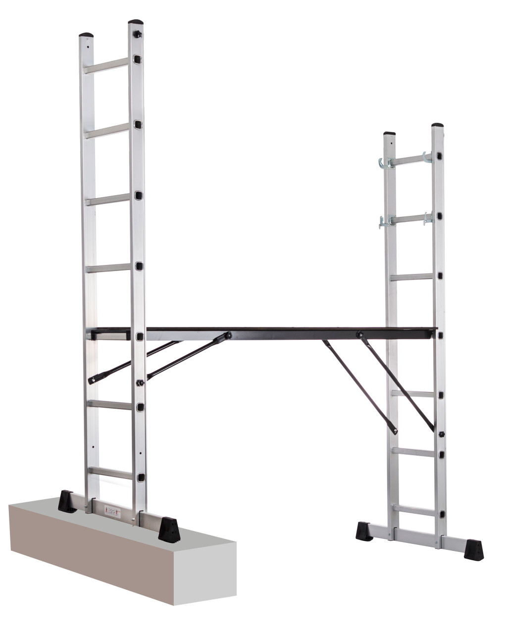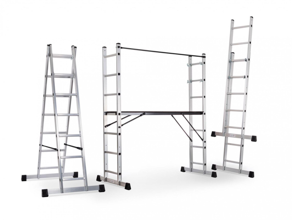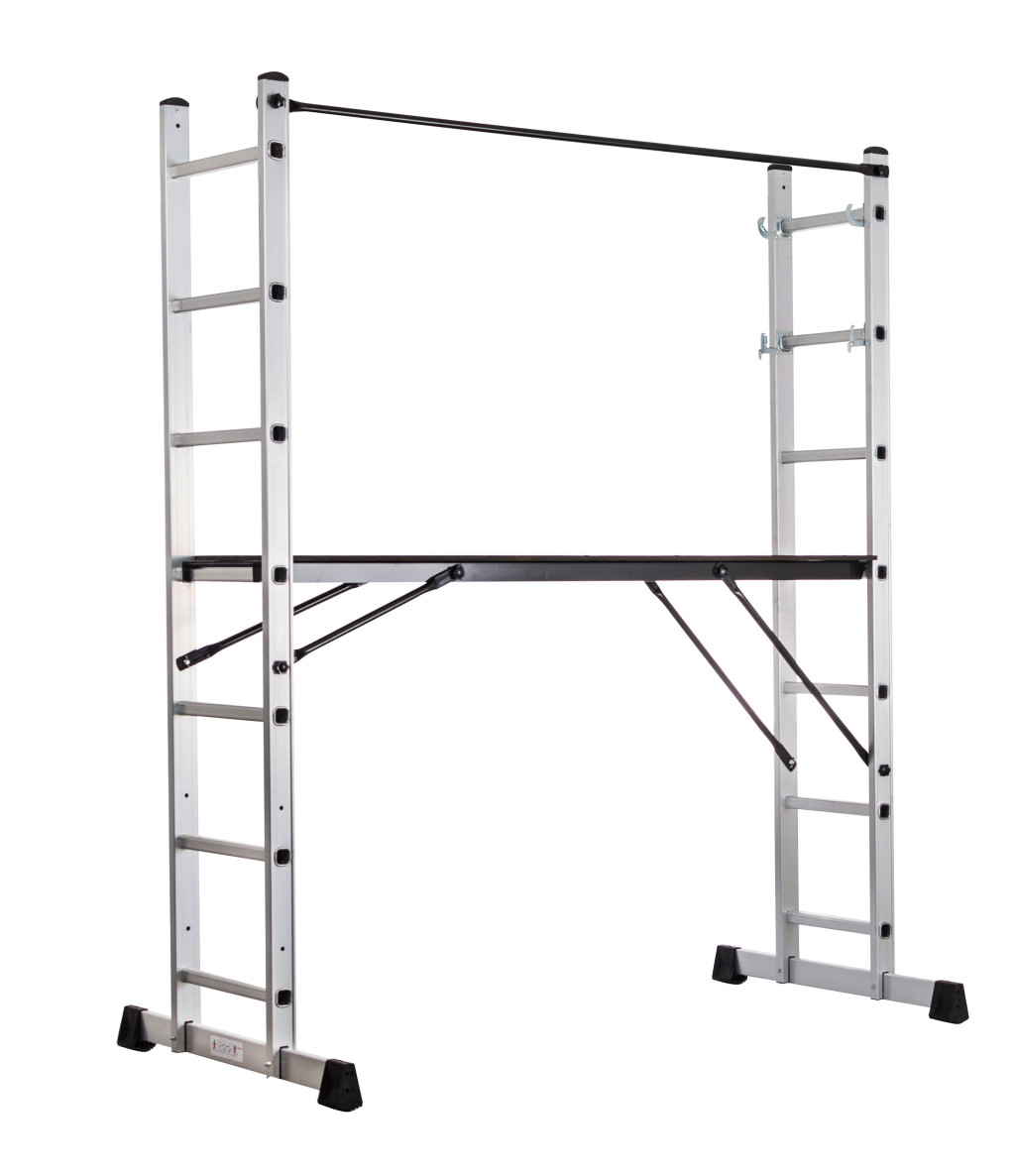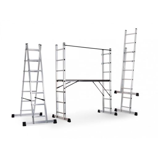 Többféleképpen használható - létraként állítható magassággal, állólétraként és állványzatként (a felület mérete 159 x 40 cm), két stabil tartólábbal rendelkezik.