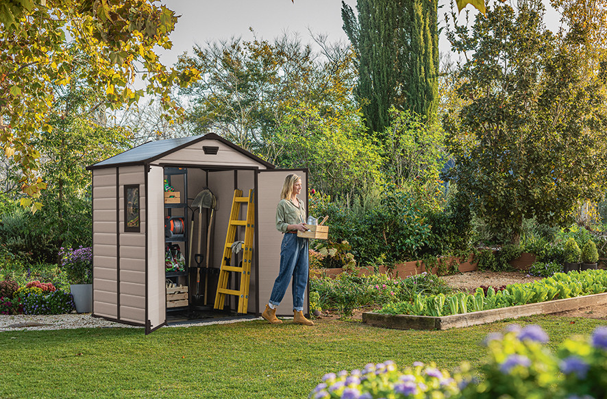 • A kertes ház Manor 6 x 5 alkalmas kerti és műhelyi eszközök, sporteszközök és egyéb felszerelések tárolására