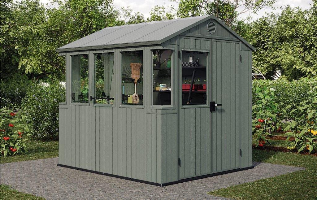 A Keter Potting Shed kerti ház tökéletes választás kerti szerszámok, műhelyfelszerelések és egyéb kerti kiegészítők tárolására. Emellett pihenőhelynek, műhelynek vagy akár saját műteremnek is kialakítható. Rengeteg tárolóhelyet biztosít különböző eszközök számára.
