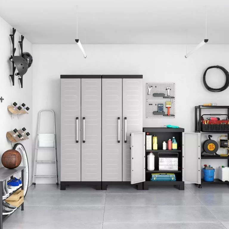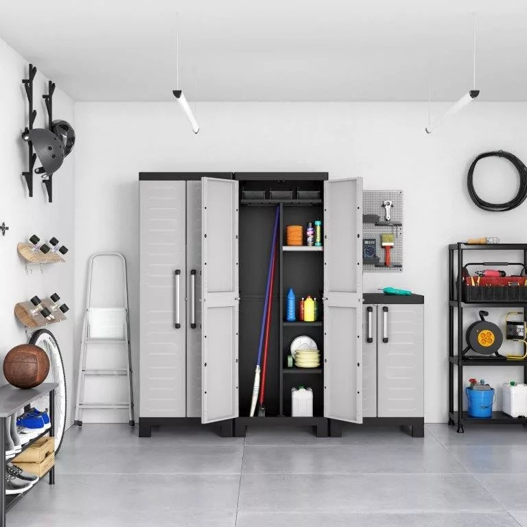 - Szekrény a műhelyi és a kerti szerszámok biztonságos tárolására