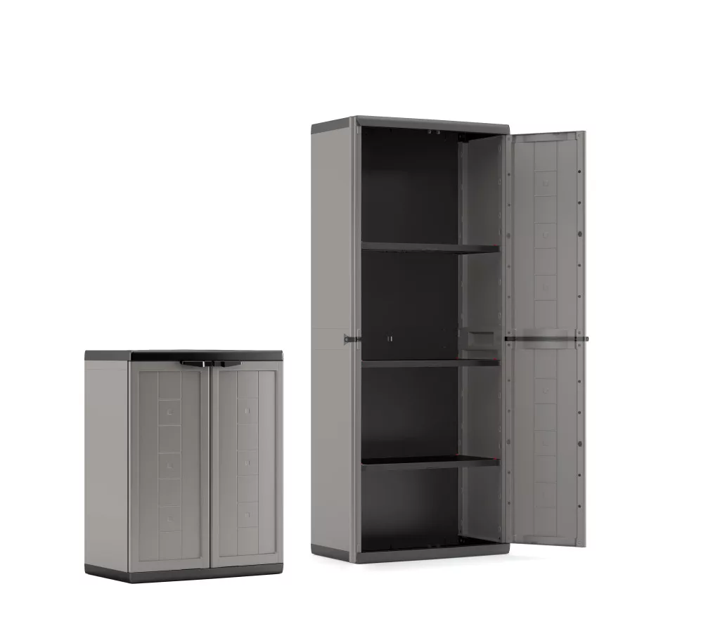 Könnyű, strapabíró és egyszerűen összeszerelhető szekrényt keresel? A olasz gyártmányú Keter Jolly High szekrény szerszám nélküli összeszereléssel, lakatolási lehetőséggel és állítható polcokkal rendelkezik, amelyek egyenként akár 15 kg-ot is elbírnak. A Keter Jolly High műanyag szekrény praktikus tárolási megoldás műhelybe, pincébe vagy háztartásba.