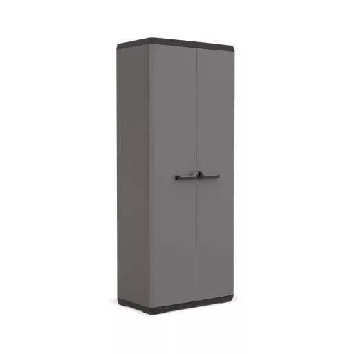 A Keter Piú Utility szekrény praktikus megoldást kínál szerszámok, takarítóeszközök vagy kerti felszerelések rendszerezett tárolására. Kombinált belső elrendezésének köszönhetően nemcsak kisebb tárgyaknak, hanem hosszabb eszközöknek is helyet biztosít – például seprűknek vagy gereblyéknek.