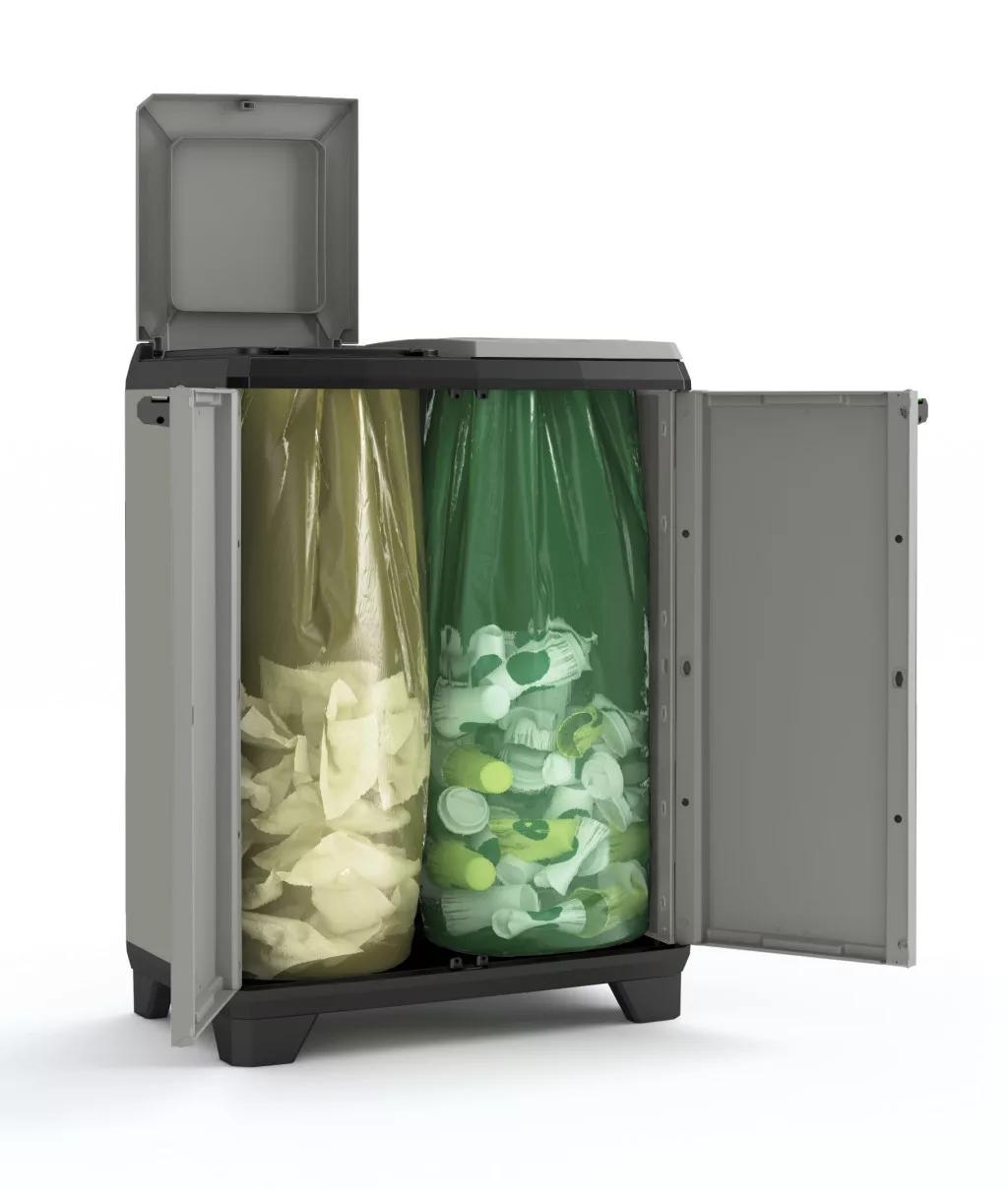 - 1x Keter Planet Split újrahasznosító szekrény lábakkal és zárható ajtókkal