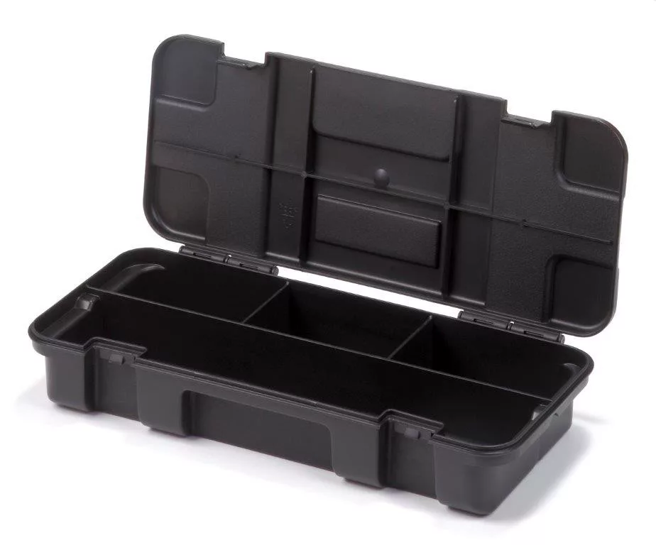 A rekeszek lehetővé teszik a doboz belső tere személyre szabását a szerszámok típusa szerint. A fém reteszek biztosítják a doboz erős lezárását. Ha az szeretné, hogy csak Önnek legyen hozzáférése a szerszámokhoz, lakatolja le őket. A lakatot külön kell megvásárolni. A praktikus fogatnyú megkönnyíti a szállítását.
