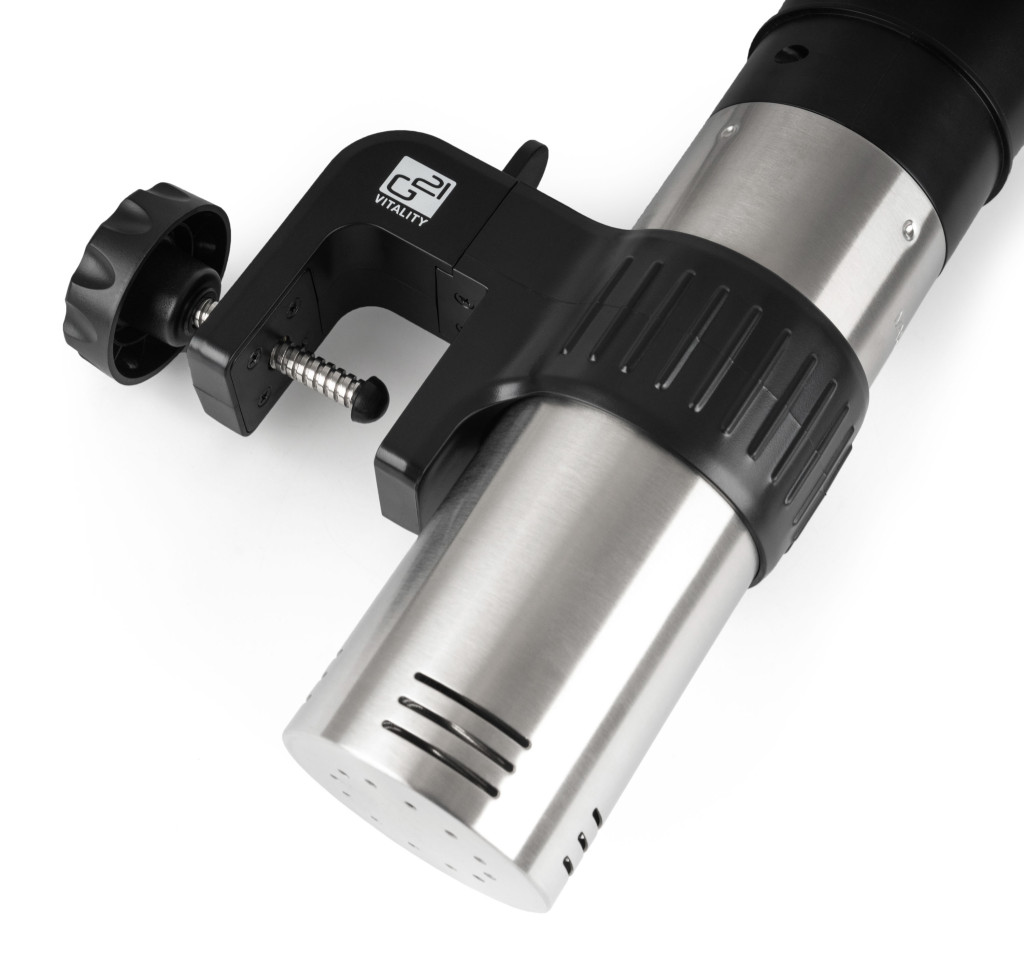 A G21 Trofeo merülő lassúfőző 1 200 W teljesítményével a sous-vide vákuumfőzés igazi mestere. Készen áll a hétköznapi biztonságos használatra és a legapróbb részletekig kifinomult. A karcsú test két részből áll - a merülő rész belső főzőspirállal és a felső rész elektronikával és kerek érintőképernyővel. Ahhoz, hogy a G21 Trofeo sous-vide főzőt biztonságosan felakaszthassuk a főzőedény szélére, a merülőfőzőt egy csúsztatható rögzítőkapoccsal láttuk el.